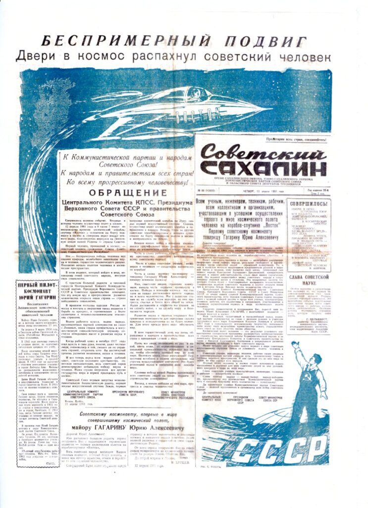 «Свершилось великое событие. Впервые в истории человек осуществил полет в космос. 12 апреля 1961 года в 9 часов 7 минут по московскому времени космический корабль-спутник “Восток” с человеком на борту поднялся в космос и благополучно вернулся на священную землю».
