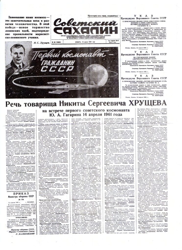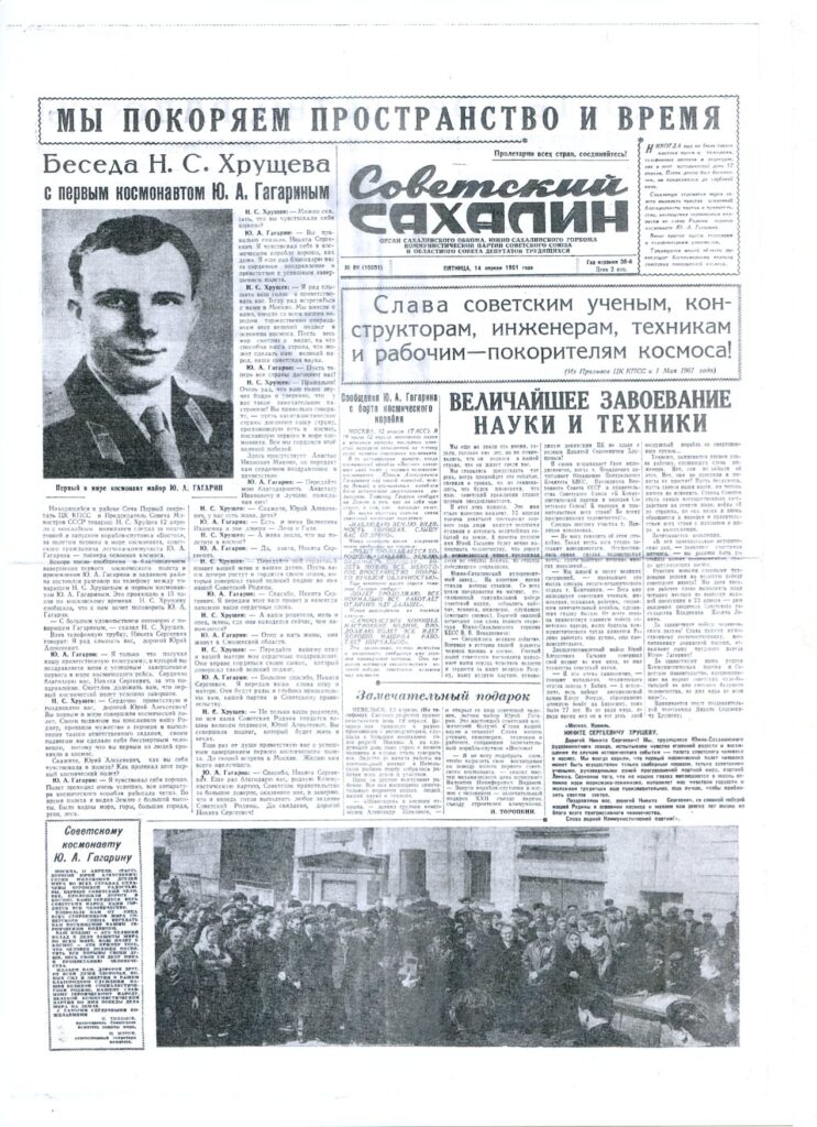 Листаем выпуск «Советского Сахалина» от 13 апреля 1961 года. Эту газету нам передал Николай Семёнович Галдин — доктор технических наук, профессор. Спасибо ему за этот живой кусочек истории.