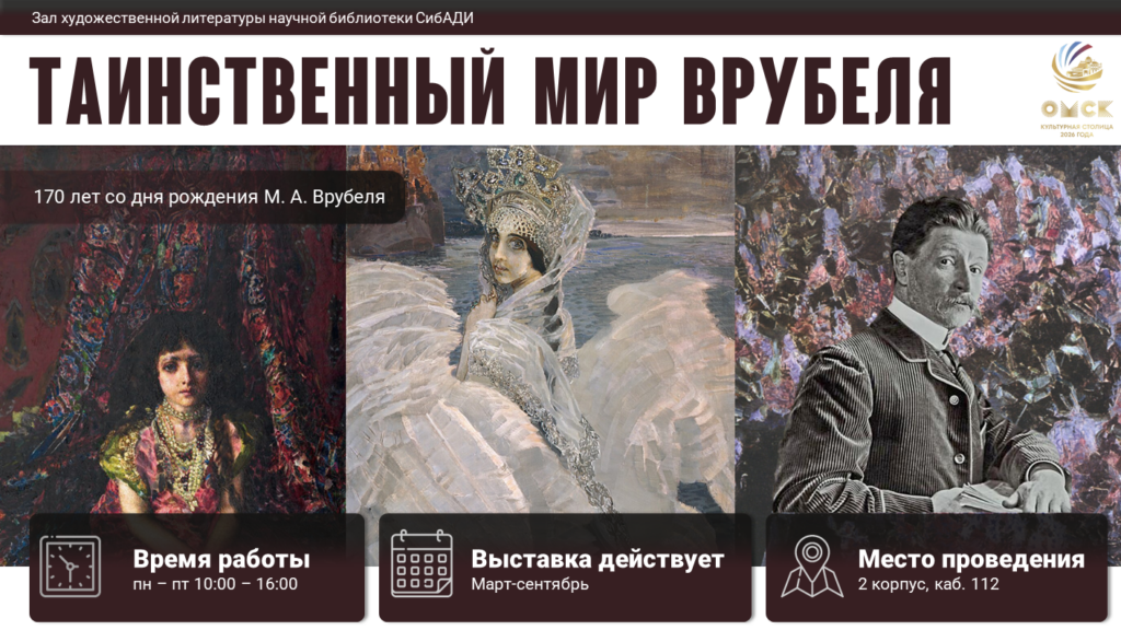 В Научной библиотеке СибАДИ начала работу книжно-иллюстративная выставка «Таинственный мир Врубеля». Это не просто собрание книг — это попытка заглянуть за пределы холста, понять человека, который верил в «повседневную арифметику» труда, но создавал вселенные, полные демонов, пророков и сказочных царевен.